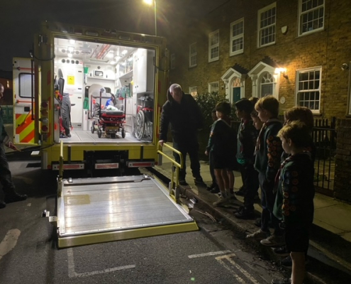 Cubs had a visit from the London Ambulance Service and go to see one of the new, custom made ambulances.